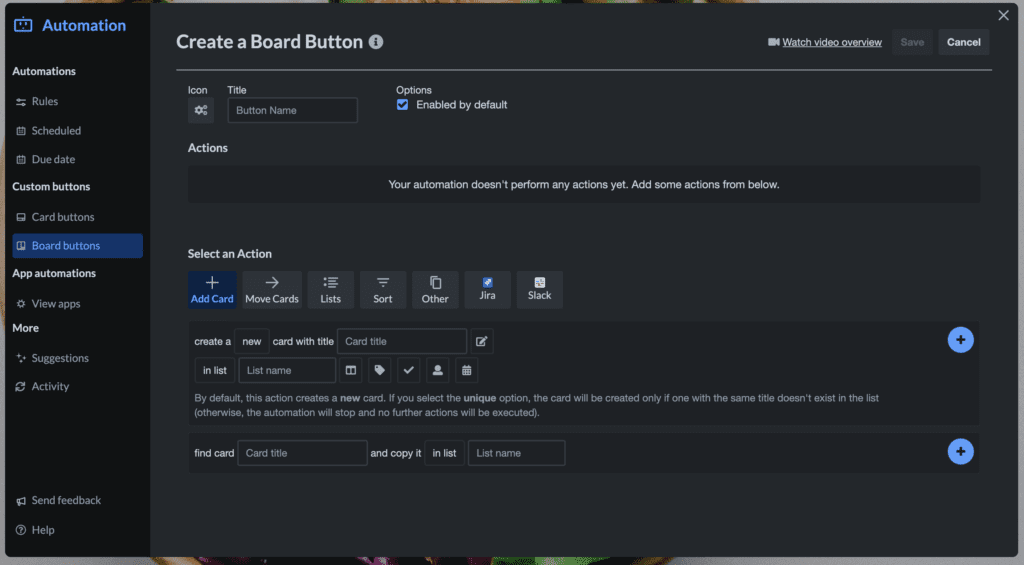 - Make sure you have selected ‘Board Buttons’ in the automation screen