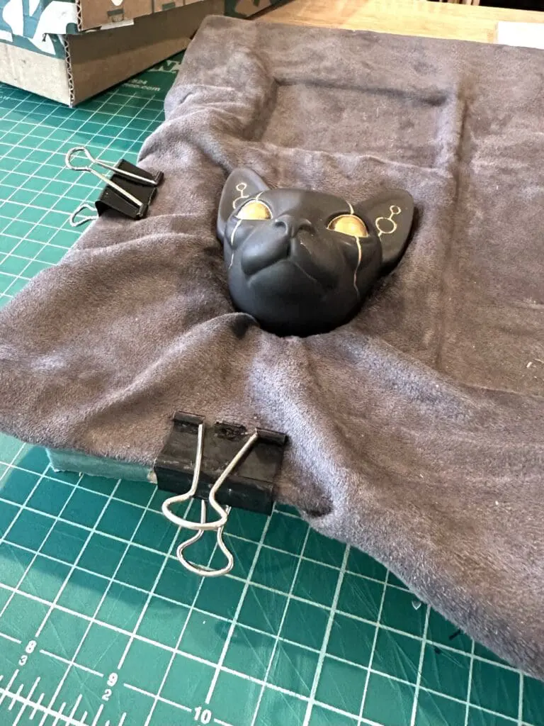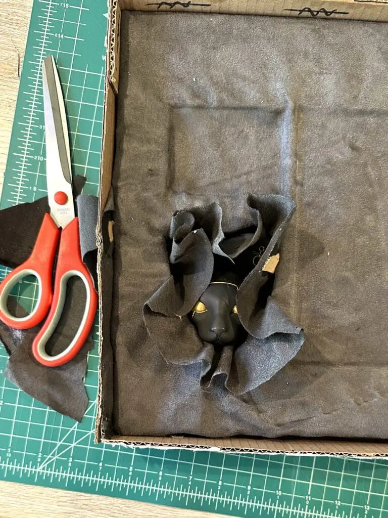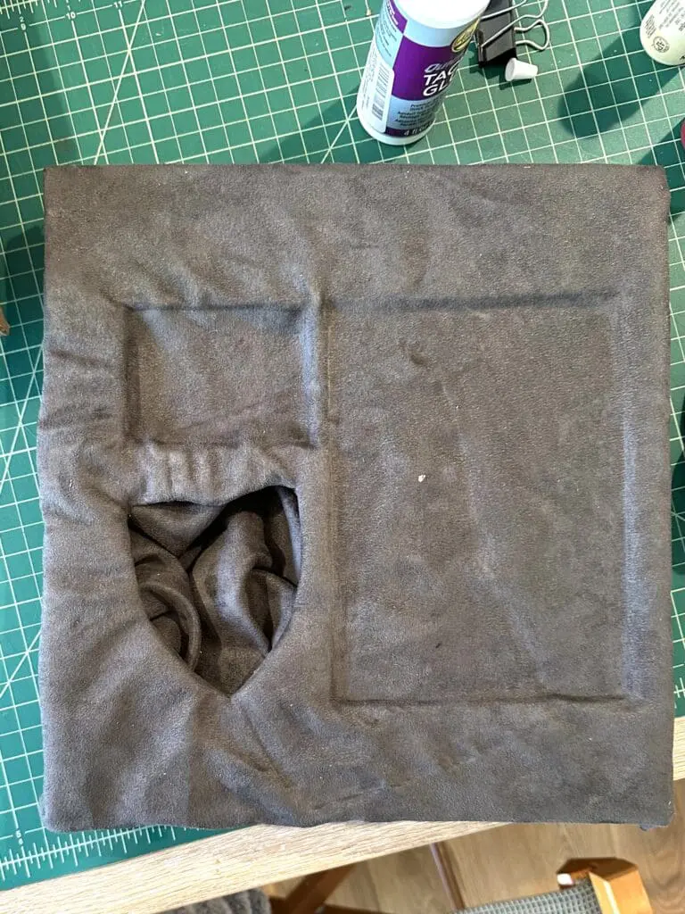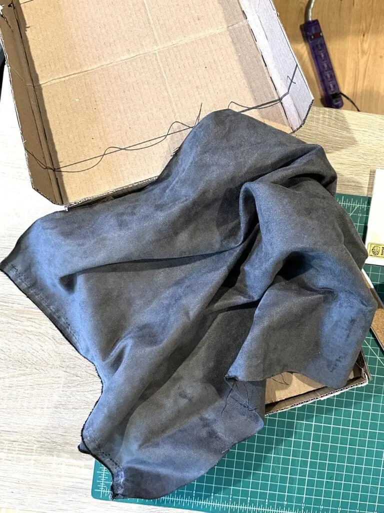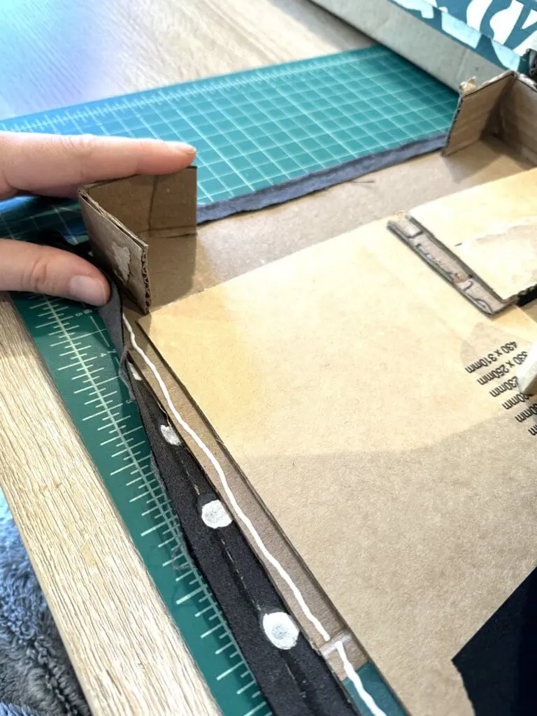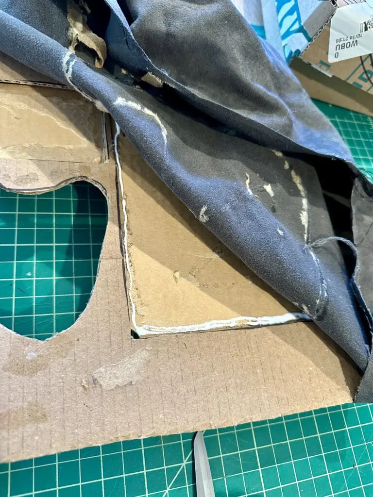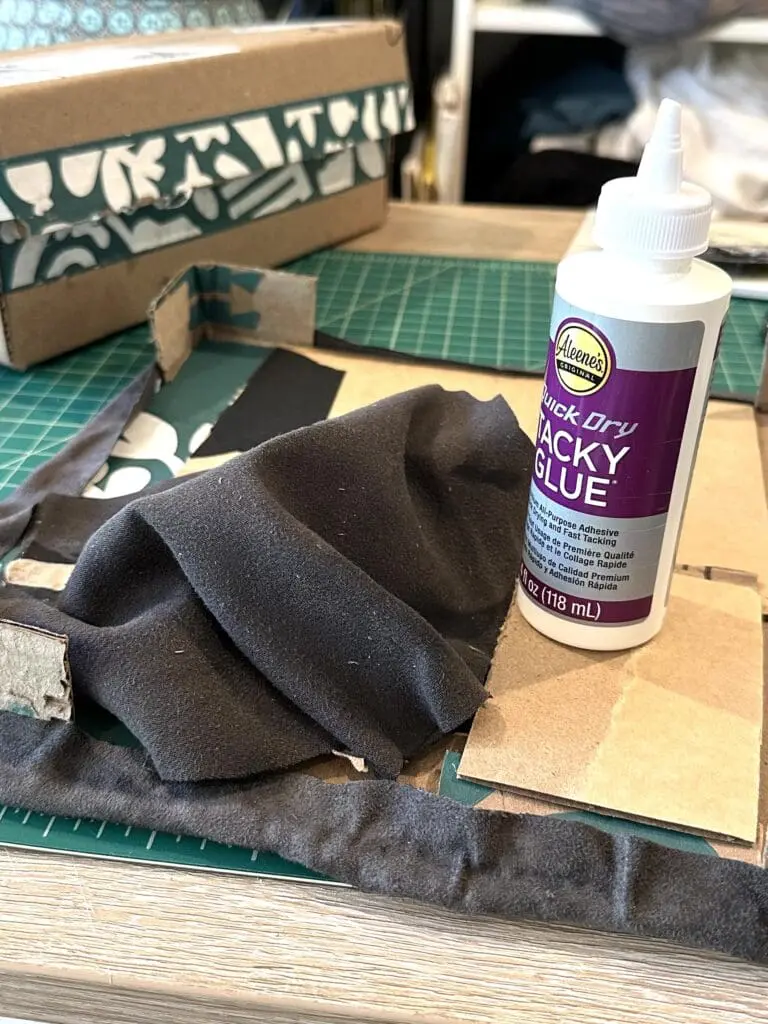 If you’re using fabric, this can be a long process because you might need to wait for a first area of the glue to dry and hold the material in place before you can continue adjusting and gluing the rest of the fabric.