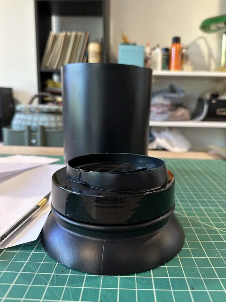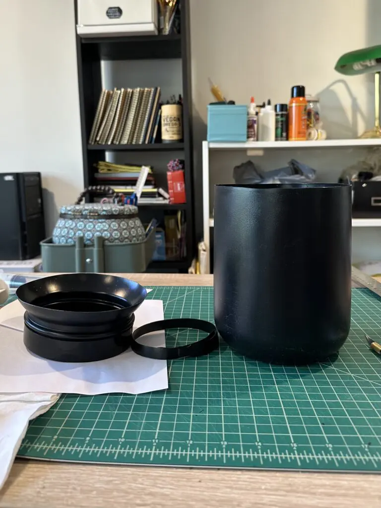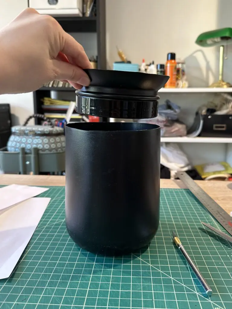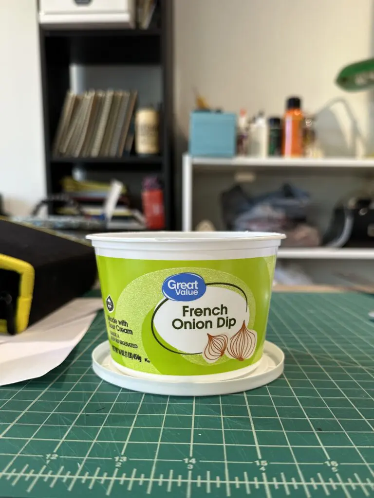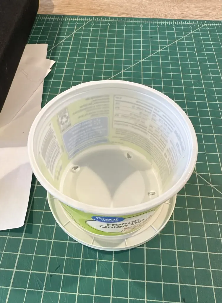 Trim off a half inch to an inch of the top of the container. You’ll use this to ensure the lid doesn’t hit the bottom of the container (which would allow water to seep back up into the soil). It will also help keep the top from ending up at an angle since it will have something to rest on.