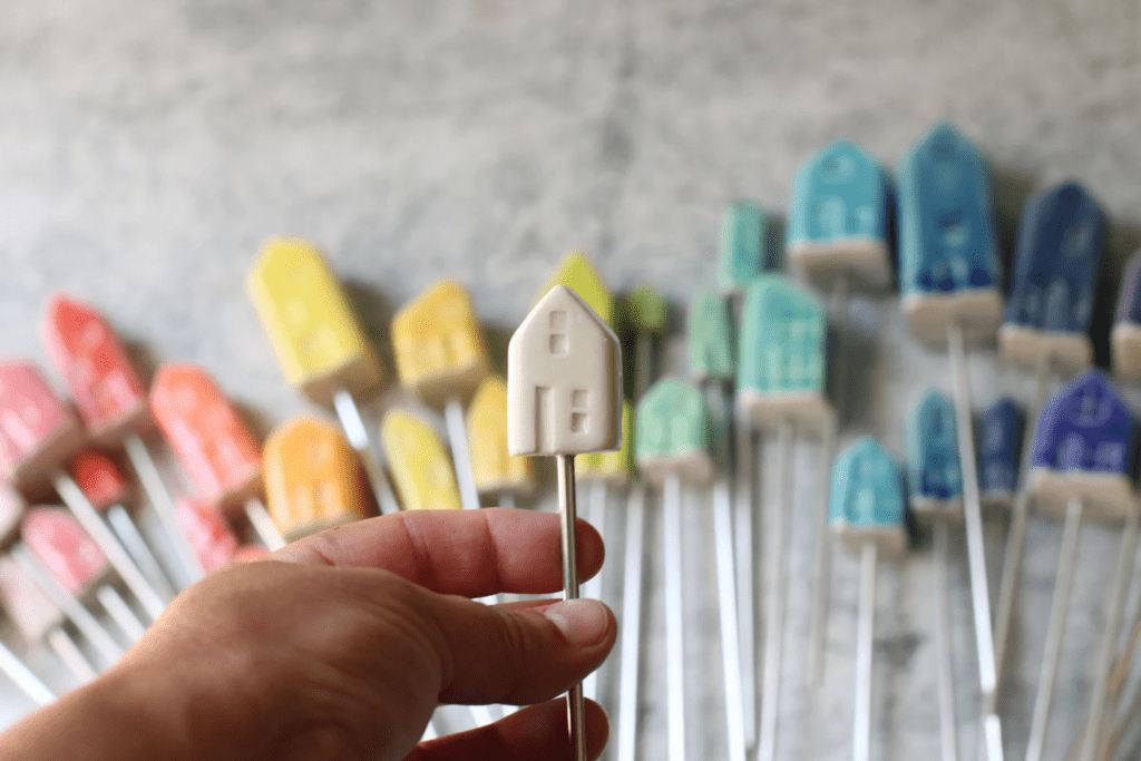 Who’s living in this little house? A fairy? A bug family? Maybe a tiny toad? Who knows! Add some whimsy to your planters with these adorable ceramic house stakes from Clay Hive Co!