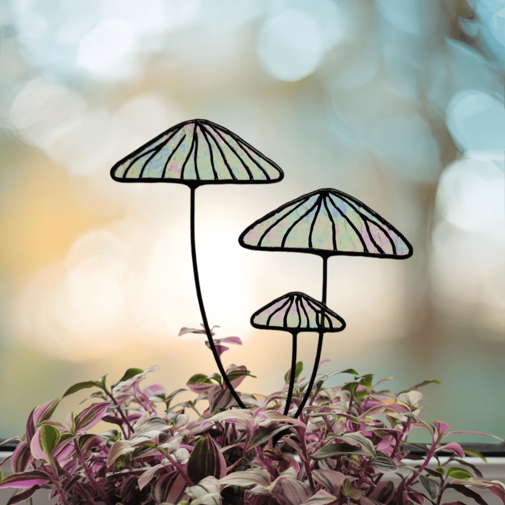 These beautiful stained glass mushrooms from Sunny Sand Glass would make a wonderful addition to a houseplant pot! Add a little wonder to houseplant decor with these eye-catching plant stakes.